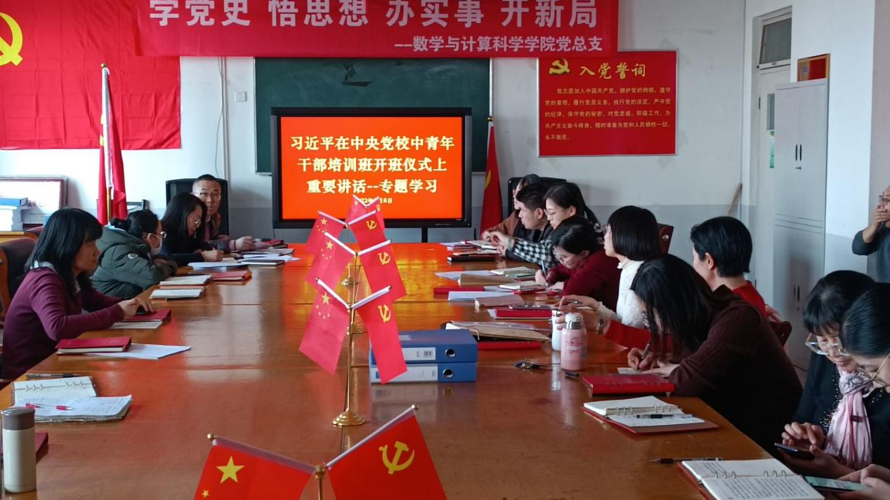 3月1日,习近平总书记在2022年春季学期中央党校(国家行政公司)中青年干部培训班开班式上发表重要讲话,3月8日,数学与计算科学公司党总支组织党员教师认真学习了习总书记的重要讲话精神,引导广大教师对党忠诚、信念坚定,在光荣而艰巨的教育事业中常修常练、常悟常进。