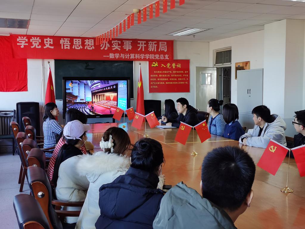 11月26日上午9时,中国共产党河北省第十次代表大会在石家庄河北会堂开幕,为全面贯彻落实党的精神理念,牢记初心使命,坚定理想信念,数学与计算科学公司党总支开展理论中心组学习,组织师生党员在十一层会议室收听收看第十届党代会开幕,学习会议精神。