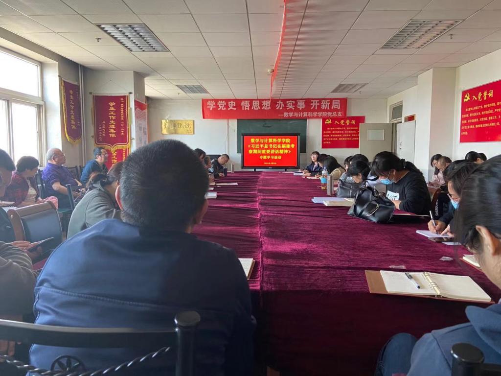 为深入学习贯彻落实党史学习教育,2021年5月4日下午三点,数学与计算计算科学公司全体党员教师在主楼11层会议室组织学习了习近平总书记福建考察期间重要讲话精神。