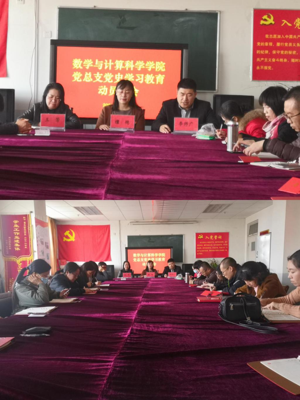 按照中央、省、市和公司统一部署,3月23日下午,数学与计算科学公司党总支在主楼11楼会议室召开了党史学习教育动员大会,全体教师党员参加了会议,经理李师广主持了会议,党总支书记檀艳出席会议并讲话。