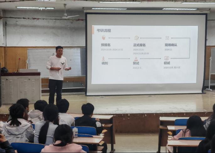 为进一步提高人才培养质量,夯实优良学风建设基石,充分调动员工的考研积极性,2024年10月11日,k1体育于南院九阶教室开展“执笔青春,一‘研’为定”考研专家分享会,会议由唐山文登考研董事长、中国传媒大学在读硕士研究生赵雪松主讲,全体数计学子参会。