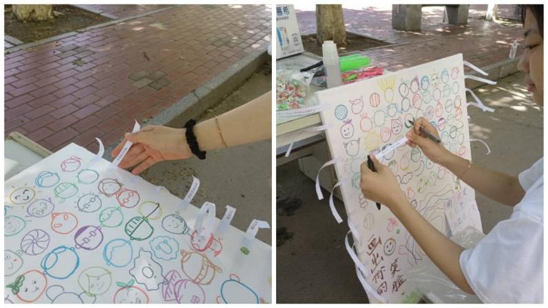 一排色彩缤纷、活力四射的小摊吸引着同学们,在“画出你的笑脸”展板上,同学们手持彩色画笔,自由地选择色彩,用画笔和颜料创造属于自己的艺术作品,不断在画板上涌现的笑脸充满活力与希望,见证了同学们积极向上的心态与精神风貌。