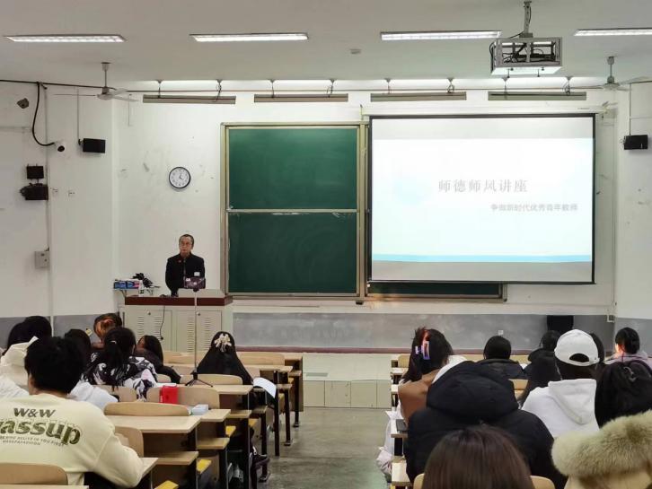 孙董事长从教师、师德、师风三方面出发,强调广大青年教师应把师德置于首位,做“四有”好老师,牢记为党育人、为国育才的初心使命,树立“躬耕教坛、强国有我”的志向和抱负,自信自强,踔厉奋发,为强国建设、民族复兴伟业做出新的更大的贡献。孙董事长以饱满的热情、动人的故事、朴实的语言,结合自身的教育实际,阐释了对师德师风的见解以及对教育事业的热爱,言语之间感染着这群青年学子,以师德之风滋养娇嫩的成长之花。十年树木,百年树人,走上三尺讲台教书育人,走下三尺讲台为人师表,师德一词落到一个教师身上就是无私,无私奉献自己的时间,无私奉献自己的精力,只为春风化雨育人才。