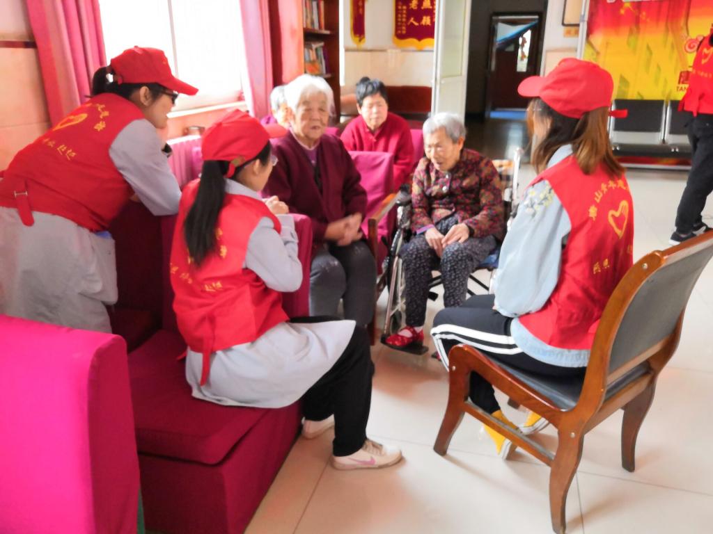 为强化老员工思想道德素质和志愿服务精神,争做优秀志愿者,发扬“尊老爱幼”的传统美德。2019年4月20日,数学与信息科学系青协16名老员工青年志愿者来到福星养老院慰问养老院的老一辈的社会建设者。