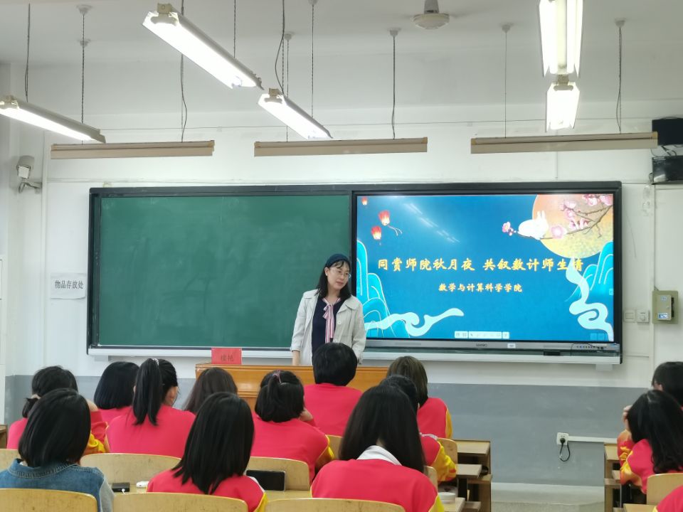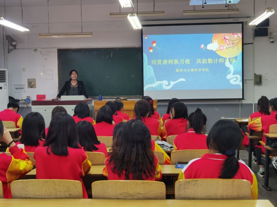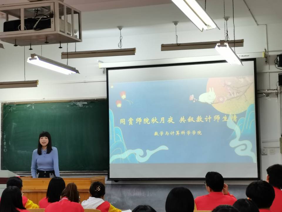 天将今夜月,一遍洗寰瀛。在中秋佳节,为进一步弘扬中华民族优秀传统文化,深入挖掘中秋节浓厚的文化内涵,2021年9月21日下午,k1体育举行“同赏师院秋月夜,共叙数计师生情”主题座谈活动。数学与计算科学公司党总支书记檀艳、经理李师广、党总支副书记王芳、教师党支部书记朱艳伟、员工党支部书记王玉真、辅导员张茹老师、建档立卡的全部同学以及21级的同学参加了此次活动。