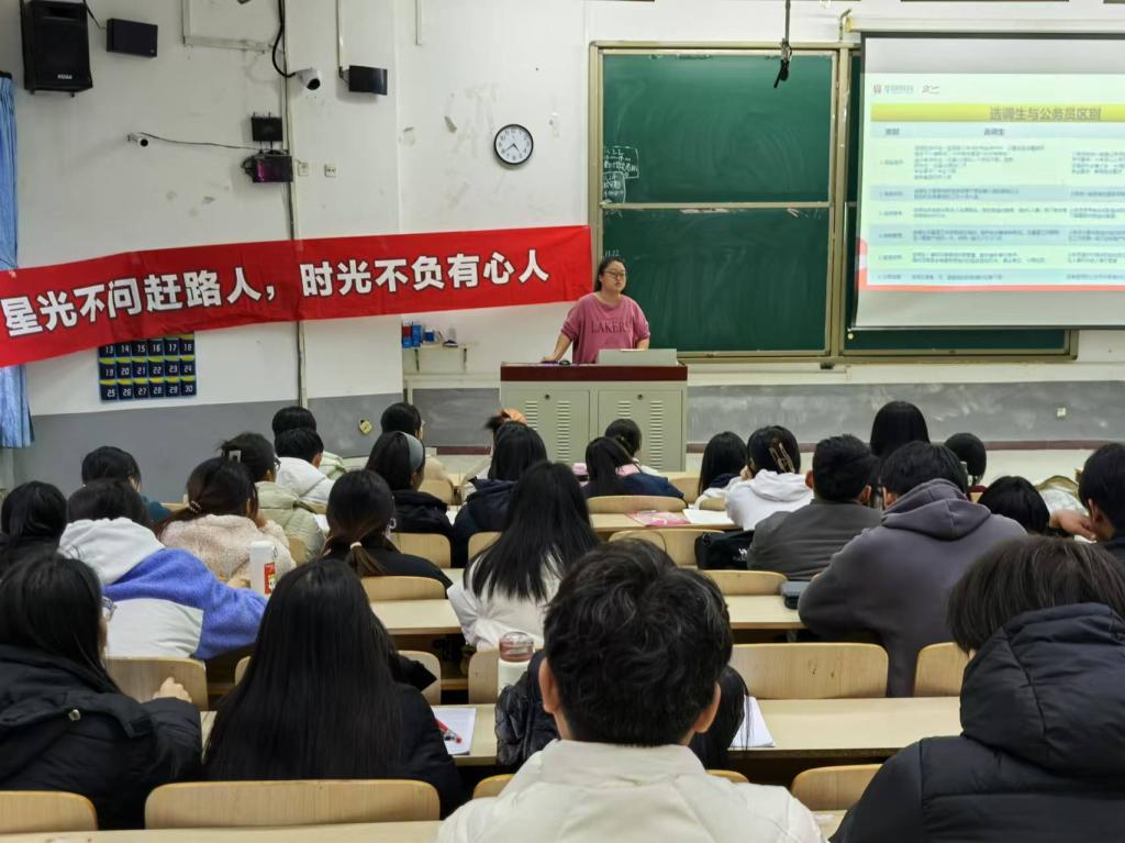 为助力员工提前规划职业生涯,打破编制信息差,深入了解公考的就业前景,更清晰地认识自身的职业优势和方向,提升应试能力和综合素质。2024年11月22日,公司开展“引航公考,助梦前行”公考主题讲座,此次讲座由刘鑫老师主讲。