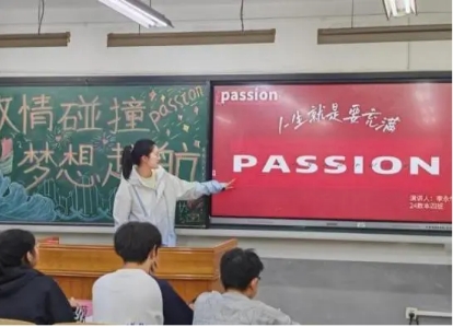 人生就是要充满——passion!挖掘内心深处的激情,审视自己的梦想,激情能点燃对目标追求的热情。同学们以“passion”为主题,通过精彩的PPT展示,进行了激情澎湃的演讲。多数同学通过深入剖析付航的脱口秀,感受他幽默的力量,传递着对生活的热爱。他们将付航在舞台上的激情与张力展现得淋漓尽致,引得台下同学们阵阵欢笑与掌声。此外,还有同学聚焦史铁生,以细腻的情感解读史铁生的作品与人生经历,从《我与地坛》到《病隙碎笔》,展现出史铁生在困境中对生命意义的执着追寻,其深刻的感悟让同学们沉浸其中,不禁为其动容。同学们在讲述激情澎湃的奋斗历程时,背景色彩变得浓烈而富有活力;每一张幻灯片都像是打开梦想之门的一把钥匙,引导着观众进入选手们所构建的激情与梦想的世界。