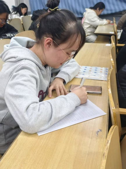 文以载道,胸怀天下。数计学子陷入对青春主题的深沉思索,似已在脑海中勾勒出清晰的框架。他们的笔尖在纸张上沙沙作响,像是青春的心跳,有力且充满节奏。有的同学从自身的学业奋斗经历出发,描绘挑灯夜读时的坚持与对未来职业的憧憬,想要把所有对青春的感悟都倾诉于纸上。作品虽出自不同的笔触,却共同奏响了青春的旋律,有对梦想的执着追求,有对挫折的无畏勇气,更有对美好未来的无限向往。