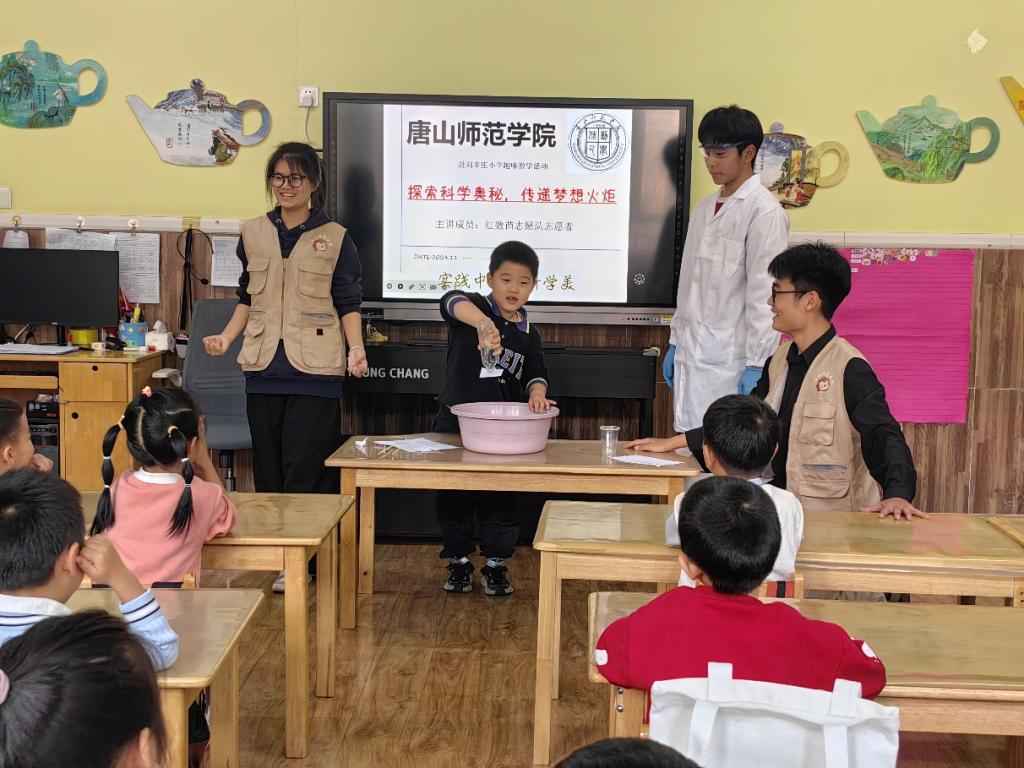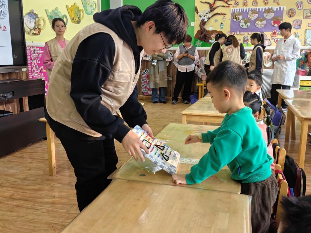 玩转小实验,探索大科学。在科学实验中,志愿者们精心设计了多个简单而有趣的实验,如利用小苏打和醋制作“火山爆发”、通过彩虹糖和水的反应观察颜色变化等。这些实验不仅让孩子们亲眼见证了科学的神奇与魅力,更激发了他们探索未知世界的欲望。在实验过程中,志愿者们耐心地引导孩子们观察、思考,鼓励他们提出自己的疑问和想法,让科学精神在孩子们心中生根发芽。
