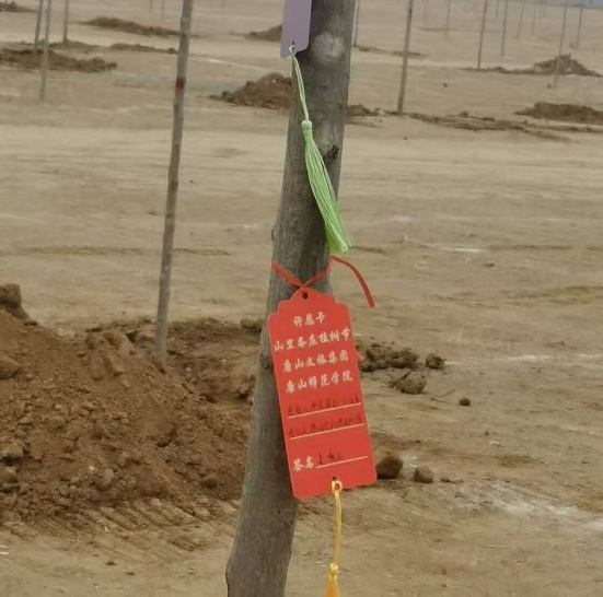 共“植”青春,满目皆春。种好树苗后,大家纷纷挂上精心准备的“希望树牌”。同学们纷纷拿起笔,写下自己对未来的期许、对环保的承诺以及对美好生活的向往,一张张小小的树牌,承载着大大的梦想,在微风中轻轻摇曳,成为一道独特而温馨的风景线,也为此次活动增添了一份浪漫与美好的回忆。