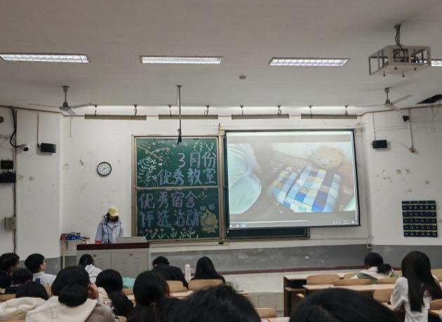 一往“寝”深,“宿”说美好。同学们展示记录宿舍与教室的日常点滴。有窗明几净的宿舍,床铺整洁、桌椅锃亮,宿舍成员配合默契,彰显着宿舍成员的自律与用心;焕然一新的教室,黑板被擦拭得一尘不染,粉笔整齐排列,同学们在教室里共同劳动,处处洋溢着积极向上的劳动氛围。